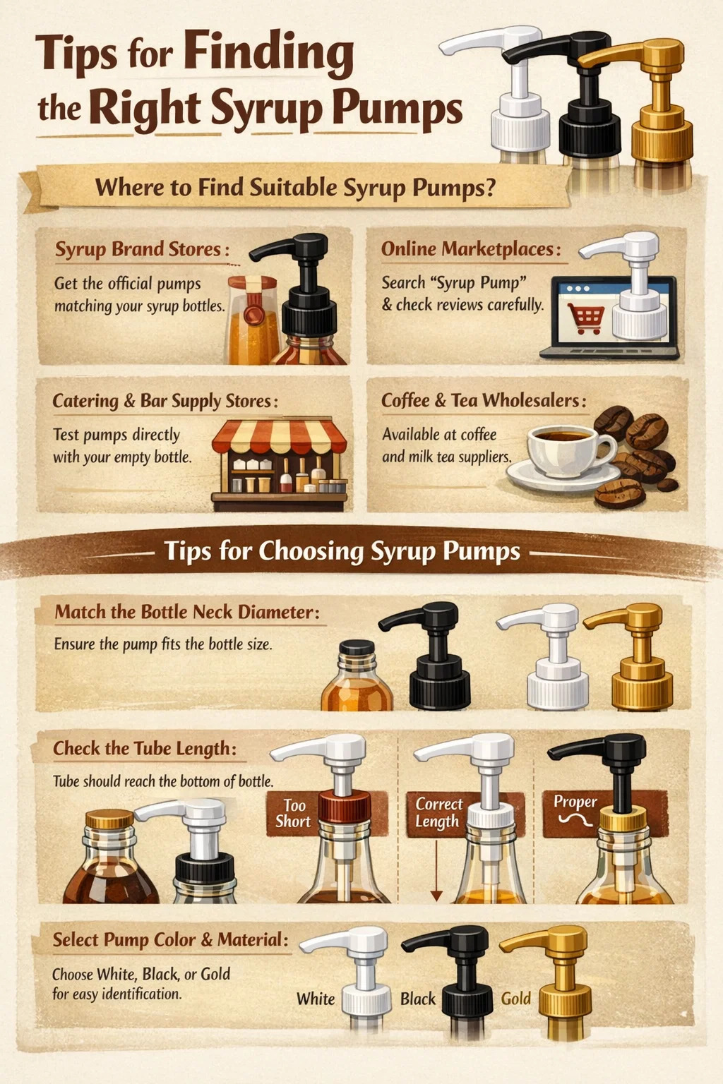 Meaitseáil an trastomhas muineál buidéal: Tá méideanna muineál éagsúla ag buidéil síoróip éagsúla. Sula gceannaítear tú, breathnaigh ar mhéid muineál an bhuidéil. Tá necks níos tanaí ag roinnt brandaí, agus tá cinn níos tiús ag cuid eile. Nuair a bhíonn caidéil síoróip á gceannach agat, déan cinnte an trastomhas comhfhreagrach a mheaitseáil. Tabhair faoi deara an fad tuí: Caithfidh an feadán plaisteach atá ceangailte leis an gceann caidéil bun an bhuidéil a bhaint amach. Má tá an feadán ró-ghearr, ní dhéanfar an síoróip ag bun a phumpáil amach; má tá sé ró-fhada, is féidir leat é féin a bhearradh le siosúr.