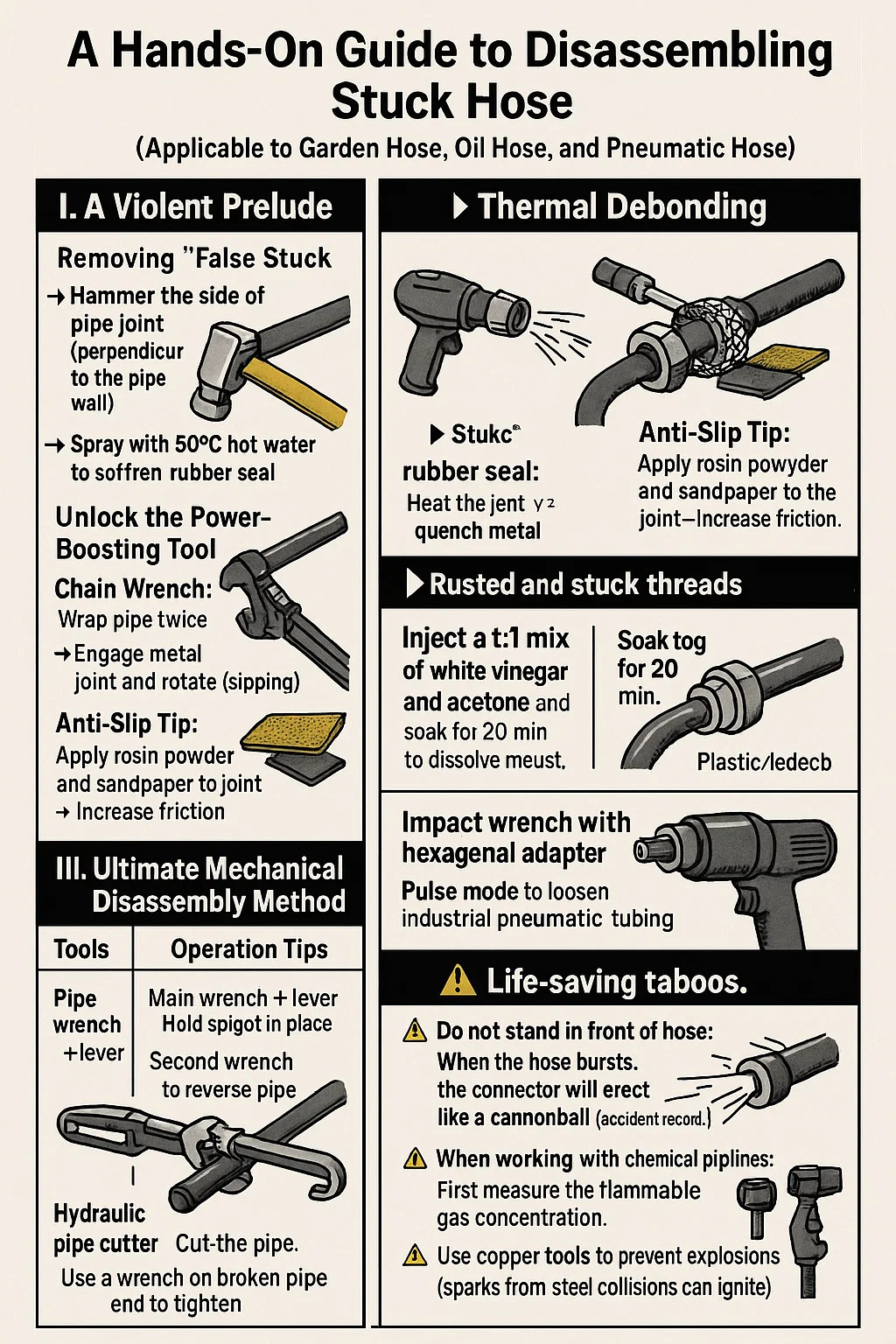 | Barra cheater eochair píopa | Glasáil an eochair phríomhúil ar spiogóta → Hose Frith-Ghearradh leis an Dara Eochair → Torque Cross-Handle | Feistis píobáin miotail | Cosa braced leathan-cosc ar phlandaí aghaidh nuair a bhriseann sé scaoilte |