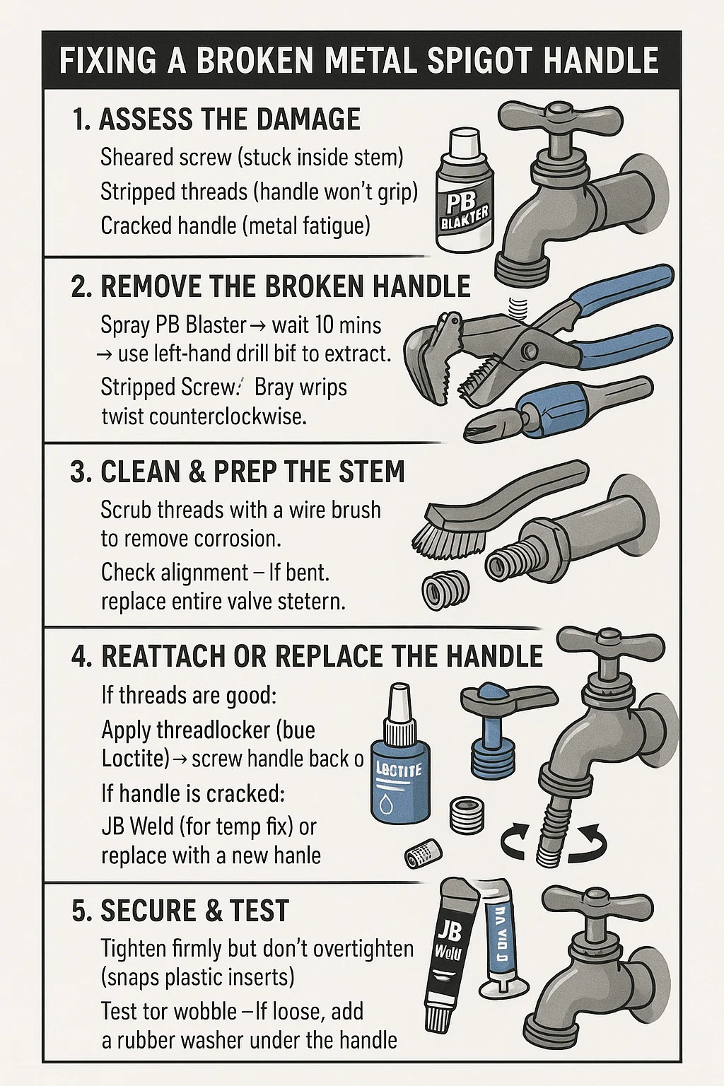 JB Weld (do shocrú te) nó láimhseáil nua a chur ina ionad.