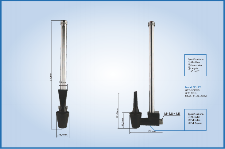 Déantar an Feadán Radhairc, an Spigot, an washer agus an cnó go léir le Ábhar Saor ó BPA. Déantar cosaint seachtrach an fheadáin le alúmanam éadrom. Déanann siad an táirge iomlán struchtúr níos láidre, marthanach agus sábháilte le hól.