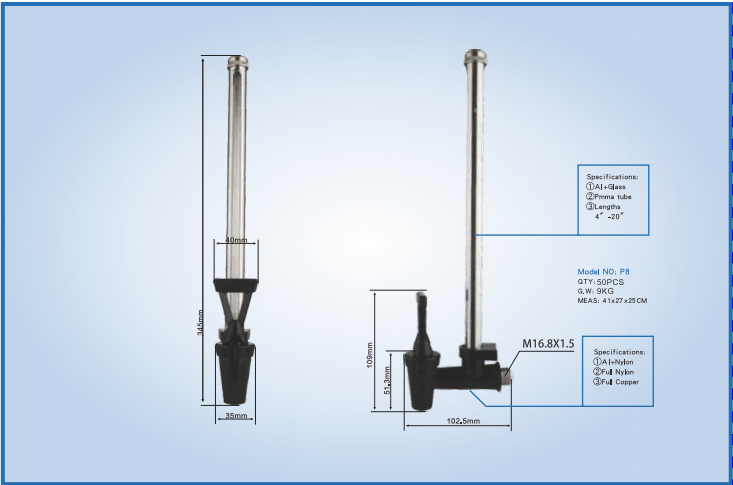 Déanann an spigot seo a fhios cé mhéad uisce le cur le do chuid aonad cruach dhosmálta níos éasca. Tógáil ardchaighdeáin. Is féidir le feadán radhairc gloine nó ríomhaire a roghnú, spigot grád tráchtála.